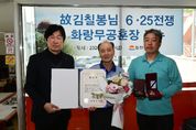대경타임즈 김대경 기자 | 김천시는 2026년 4월 27일, 故김칠봉님의 유족에게 화랑무공훈장을 전수하는 뜻깊은 행사를 개최했다. 故김칠봉님은 6.25전쟁 당시의 공로로 무공훈장 수여가 결정됐으나, 전쟁 중 혼란으로 당시에는 교부받지 못해 지금에야 유족들이 대리수여받게 됐다. 이번 전수식은 국가를 위해 헌신한 고인의 업적을 기리고 감사의 뜻을 전하기 위해 마련됐다. 유가족들은 뒤늦게나마 고인의 희생을 기리고 기념할 수 있는 무공훈장을 받게 된 것에 큰 기쁨과 감사의 마음을 전했다. 임재춘 복지정책과장은 “비록 오랜 시간이 흘렀지만, 고인의 숭고한 희생을 기억하고 가슴에 새기겠다. 오늘 이 자리에서 그 뜻을 유족분들께 전할 수 있어 매우 뜻깊다.”라고 했다.