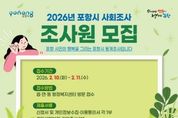 대경타임즈 이강옥 기자 | 포항시는 ‘2026년 경상북도 및 포항시 사회조사’에 참여할 조사원 34명을 모집한다. 이번 사회조사는 포항시민의 생활 수준을 파악해 향후 시정 운영의 방향을 설정하는 기초자료로 활용된다. 신청 자격은 만 18세 이상 포항시민이라면 누구나 가능하며, 참여 희망자는 오는 10일부터 11일까지 가까운 읍·면·동 행정복지센터를 직접 방문해 신청하면 된다. 합격자 발표는 오는 19일 이후 진행될 예정이며, 선발된 조사원은 3월 4일 업무 교육과 준비조사를 거쳐 3월 11일부터 본격적인 현장조사에 투입된다. 조사원은 조사 기간 중 대상 가구를 직접 방문해 면담을 진행하며 시민들의 다양한 의견을 수집하는 역할을 맡는다. 2026년 사회조사는 경상북도 공통항목 44개 문항과 포항시민의 정책 수요를 반영하기 위한 포항시 특성항목 8문항을 추가해 총 52개 문항으로 구성됐다. 시는 이번 조사가 향후 포항시 정책 수립에 중요한 역할을 할 것으로 기대하고 있다. 정명숙 디지털융합산업과장은 “이번 사회조사는 포항시의 미래를 밝히는 중요한 발걸음”이라며,