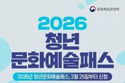대경타임즈 최신형 기자 | ■ 2026 청년문화예술패스, 2월 25일부터 신청 - 19~20세 청년 최대 20만 원 청년 문화예술패스는 19~20세 청년*이 협력 예매처에서 공연, 전시, 영화 예매에 즉시 사용할 수 있는 이용권입니다. * 2026년 대상은 2006~2007년생 서울, 경기, 인천 등 수도권 지역 거주 청년→15만 원 비수도권 지역 거주 청년→20만 원 기존에는 사전에 한 개의 예매처만 선택해 이용할 수 있었는데요. 올해부터는 7개 예매처에서 공연과 전시, 영화 등 보고 싶은 작품의 관람권을 예매할 수 있습니다. NOL ticket, 티켓링크, yes24, Melon티켓, MEGABOX, 롯데시네마, CGV ■ 지원대상 대한민국 19~20세 청년 총 28만 명 생애 최초 1회 지원 ■ 신청기간 2026년 2월 25일~6월 30일 신청순 발급(지역별 예산 소진 시 해당 지역 발급 마감) ■ 신청방법 청년문화예술패스 누리집 회원가입 후 온라인 신청 ■ 문의 청년문화예술패스 고객지원센터 ☎1577-1968