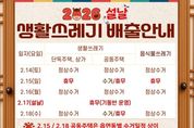 대경타임즈 이강옥 기자 | 포항시는 설 명절을 맞아 시민들의 쓰레기 배출 불편을 최소화하고 쾌적한 환경에서 연휴를 보낼 수 있도록 ‘생활쓰레기 관리 종합대책’을 추진한다. 이번 대책은 오는 9일부터 20일까지 12일간 집중 시행된다. 연휴 전인 9일부터 14일까지는 불법 투기 및 관리 취약지에 대한 중점 수거 활동을 실시한다. 29개 읍·면·동에서는 공무원과 자생단체, 지역 주민들이 참여하는 명절맞이 대청소를 통해 주요 도로와 상습 쓰레기 취약지에 쌓인 쓰레기를 일제 점검할 계획이다. 설 연휴 기간인 14일부터 18일까지는 생활쓰레기 종합상황실을 운영해 쓰레기 적체 및 투기 신고에 신속히 대응할 예정이다. 특히 설 당일인 17일에는 생활·음식물 쓰레기 수거가 전면 휴무지만 기동 청소반을 운영해 주요 간선도로와 다중이용시설의 쓰레기를 특별 수거한다. 음식물쓰레기는 15일과 설 당일인 17일을 제외한 연휴 동안 정상 수거해 악취 발생을 최소화한다. 포항시는 앞서 지난 6일 생활쓰레기 수거와 처리를 담당하는 청소대행업체, 재활용선별장, SRF(생활폐기물 에너지화시설) 관계자들과