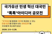 대경타임즈 김영호 기자 | 국가유산청은 2월 9일부터 2월 28일까지 국가유산을 활용해 국민 삶의 질을 높이는 민생형 정책을 발굴하기 위한 '국가유산 민생 혁신 대국민 “톡톡” 아이디어 공모전'을 개최한다. 올해 처음으로 실시되는 이번 공모전은 국가유산 정책을 기존의 보존 중심에서 나아가 생활 · 복지 · 경제 · 교육 · 인공지능(AI) · 지역 활성화 등 국민 삶 전반으로 확장하는 것을 목표로 하며, 공모 분야는 총 세 가지이다. 먼저, ‘국민과 함께 하는 소통·협력’ 분야에서는 국민·지자체·민간·정부 부처가 함께 협력해 K-헤리티지를 지역과 일상 속에서 즐기고 활용할 수 있는 아이디어 또는 K-헤리티지를 통해 국민이 체감할 수 있는 민생 효과를 만들어낼 수 있는 제안을 기다린다. ‘대국민 서비스’ 분야에서는 국가유산의 보존·관리, 활용 과정에서 국민이 느끼는 불편을 줄이고, K-컬처 콘텐츠와 연계해 국가유산을 더 쉽고 친근하게 누릴 수 있는 서비스 개선 아이디어를 모집한다. ‘일하는 방식 혁신’ 분야에서는 국가유산 관련 업무의 불필요한 절차를 줄이고, 인공지능(AI)과 디지털 기술 등을 활용해