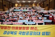 디지타임즈(DGTIMEZ) 김완태 기자 | 지난 12월 17일 국회의원회관 대회의실에서 김형동 국회의원과 임미애 국회의원이 공동 주최한 ‘경상북도 국립․공공의대 설립 국회토론회’가 열렸다. 이날 토론회에는 이철우 경상북도지사, 권기창 안동시장 등 지자체 주요 인사와 경상북도 국립의과대학 설립 범시도민단을 포함한 시민단체 관계자 등 약 450명이 참석해 경북 지역 의료 여건과 국립의과대학 설립 필요성에 대한 논의를 이어갔다. 또한 권오을 국가보훈부 장관, 김도읍 국민의힘 정책위원회 의장, 김영호 더불어민주당 교육위원회 위원장 등 여야 의원 30여 명이 참석해 경북 국립의대 설립에 대한 관심을 보였다. 1부 개회식에서는 참석자들이 ‘경북 도민의 염원, 국립․공공의대 설립’이라는 문구가 적힌 손팻말을 들고 지역 의료 현안에 대한 공감의 뜻을 함께 표현했다. 2부에서는 유천 국립목포대 의과대학설립추진단 부단장이 ‘전남 국립의대 설립 현황 및 계획’을, 정태주 국립경국대학교 총장이 ‘경북도 국립․공공의대 설립의 필요성과 추진 방향’을 주제로 발표했다. 이어진 토론에서는 정태주 총장이 좌장을 맡고