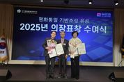대경타임즈 김대경 기자 | 민주평통 문경시협의회 천금선 부회장과 박인국 자문위원은 11일 안동 스탠포드호텔에서 열린 ‘2025년 민주평화통일자문회의 표창 수여식’에서 의장(대통령) 표창을 수상했다. 이날 수여식에서 민주평통 의장인 이재명 대통령을 대신하여 배용한 민주평통 경북지역회의 부의장이 표창을 시상했다. 민주평화통일자문회의는 한반도 평화통일에 대한 정책 수립 및 추진에 관하여 대통령 자문에 응하는 대통령 직속 헌법기관으로, 천금선 부회장과 박인국 자문위원은 현재 제22기 경북 문경시협의회 자문위원으로 활동하며 한반도 평화통일과 지역사회 통일 분위기 조성에 크게 기여한 공적을 인정받았기에 의장 표창을 수상했다. 천금선 부회장과 박인국 자문위원은“자문위원으로 활동하면서 뜻깊은 상을 받게 되어 대단히 영광스럽게 생각하며, 앞으로도 지역사회에 한반도 평화통일을 앞당길 수 있도록 더욱 노력하겠다”고 소감을 말했다.