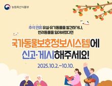 디지타임즈(DGTIMEZ) 최신형 기자 | 추석 연휴 유실·유기동물을 발견하거나, 반려동물을 잃어버렸다면 국가동물보호정보시스템에 신고·게시해주세요! ■ 추석 연휴 유실·유기동물 구조 통합 신고시스템 운영으로 신속한 온라인 신고·접수 가능 · 기간: 2025.10.2.(목)~10.10.(금) · 신고 게시: 국가동물보호정보시스템 누리집 팝업창 ■ 유실·유기동물 온라인 신고·접수 방법 ① 유실·유기동물을 발견한 경우 국가동물보호 정보시스템 '동물발견' 배너 클릭 → 발견장소, 사진, 개체 특징 등 제보 등록 → 해당 지자체 보호센터 정보제공 → 지자체 동물보호센터 신속 대응 ② 반려동물을 분실한 경우 국가동물보호 정보시스템 '동물분실' 배너 클릭 → 반려동물 분실장소, 일시, 사진 등 정보 등록 → 시민 간 발견 정보 공유(댓글 창 활성화) → 필요시 분실신고 병행(등록동물 정보 변경) 유실·유기동물 구조 통합신고로 보호자를 빠르게 찾아드리겠습니다