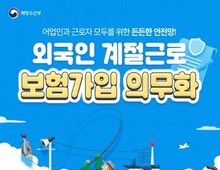 대경타임즈 최신형 기자 | 어업인과 근로자 모두를 위한 든든한 안전망! 외국인 계절근로 보험가입 의무화 1. 임금체불 보증보험 Q. 무엇을 보장하나요? - 임금 미지급 발생 시 근로자의 생계 보호 Q. 누가 가입하나요? - 어업인(고용주) Q. 언제 가입하나요? - 근로계약 체결 후 30일 이내 Q. 어떻게 가입하나요? - 지자체 안내에 따라 가입(추후 안내) 2. 어업인 안전보험 Q. 무엇을 보장하나요? - 어업작업 중 발생하는 상해·질병보상 ※ 사망·장해 발생 시 최대 1.2억 원 보장 Q. 누가 가입하나요? - 어업인(고용주) Q. 언제 가입하나요? - 재입국: 근로 시작 이후 15일 이내 - 신규입국: 외국인 등록 이후 15일 이내 Q. 어떻게 가입하나요? 전국 지역 수협에 고용주가 직접 방문 가입 ※ 준비물: 외국인등록증, 근로계약서 사본, 사업자등록증 또는 고용허가서 등 3. 상해보험 Q. 무엇을 보장하나요? - 일상생활 중 발생하는 상해·질병 보상 ※ 상해사망: 최대 3000만 원 등 &