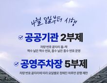 대경타임즈 최신형 기자 | - 4월 8일부터 시행 ■ 공공기관 2부제 차량번호 끝자리 홀·짝 짝수 날은 짝수 번호, 홀수 날은 홀수 번호 운영 ■ 공영주차장 5부제 차량번호 끝자리에 따라 요일별로 정해진 하루만 운행 제한