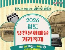 대경타임즈 최영 기자 | 청도군은 오는 3월 27일부터 28일까지 이틀간 청도 유천문화마을 일원에서 주민과 관광객이 함께하는“그땐&그랬지” 청도 유천문화마을거리축제를 개최한다. 이번 축제는 주민이 직접 참여하는 문화행사를 통해 하남지구에 활력을 불어넣고 지역경제를 활성화하기 위해 마련됐으며, 한재 미나리와 신도·사촌 딸기 등 지역 농특산물과 연계해 지역 관광과 먹거리의 시너지 효과도 창출할 계획이다. 특히 축제기간 중 농특산물 판매부스에서는 미나리, 딸기, 감말랭이 등 신선한 청도군 농특산물 할인행사가 진행될 예정이다. 축제 첫날인 27일 오후 4시에 진행되는 개막식에는, 새마을3단체와 방문객이 함께 참여하는 새마을운동 거리 퍼레이드가 진행돼 복고 의상을 입고 거리를 행진하며 축제 분위기를 한층 끌어올릴 예정이다. 축제 기간에는 유천문화마을 거리 곳곳에 숨겨진 청도 관광9경 사진을 찾아 SNS에 인증하면 추억의 뽑기판 참여기회를 제공하는 ‘청도관광9경 보물찾기’이벤트도 운영된다. 이와 함께 유천극장에서 전문 DJ와 복고 EDM 댄스팀이 참여하는 ‘추억의 고고장’공연이 열려 7080 감성의 음악과