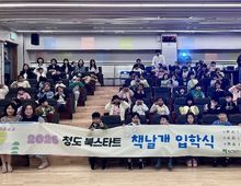 대경타임즈 남해련 기자 | 경상북도교육청 청도도서관(관장 조은희)은 4월 10일 청도도서관 문화관에서 관내 초등학교 9개교 1학년 학생 80여 명을 대상으로 2026년 청도 북스타트 책날개 입학식을 개최했다. 북스타트는 '책읽는사회문화재단'이 후원하는 지역사회 독서 문화 운동으로, ‘책과 함께 인생을 시작하자’라는 취지로 시작됐다. 책날개 입학식은 초등학교 1학년 학생들의 입학을 축하하고, 새로운 학교생활을 책과 함께 시작하고 성장할 수 있도록 돕는다. 이날 책날개 입학식은 북스타트에 대한 소개를 시작으로 책날개 교사 독서 서약과 축하공연으로 이루어졌다. 특히, 환상적인 모험과 따뜻한 감동이 있는 '깃털피리' 공연을 통해 학생들이 낯선 학교생활에 대한 긴장감을 풀고 상상력의 세계에 흠뻑 빠져들었다. 북스타트 연계 프로그램으로는 4월 한 달 동안 어린이 자료실에서 2026년 북스타트 선정도서를 전시하고 있으며, '자개장 할머니'의 안효림 작가와의 만남이 5월 16일 오후 2시에 예정되어 있다. 작가와의 만남 신청은 4월 22일부터 도서관 누리집에서 선착순으로 접수한다. 조은희 청도도서관장은 "첫걸음을