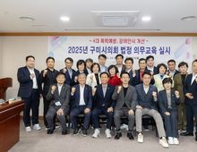 디지타임즈(DGTIMEZ) 김영호 기자 | 구미시의회는 10월 24일 오후 2시부터 의회 3층 간담회장에서 의원 및 직원을 대상으로 '2025년도 법정의무교육'을 실시했다. 이번 교육은 법정의무교육인 ▲성희롱·성폭력·가정폭력·성매매 등 4대 폭력예방 교육과 ▲장애인식개선 교육을 통해 건전하고 건강한 조직 문화를 조성하기 위해 마련됐다. 먼저, 4대 폭력예방 교육은 한국양성평등교육진흥원 등록강사이자 젠더발전소 대표인 허지원 강사가 맡아, 성인지 감수성 제고와 폭력 없는 조직문화 조성을 주제로 강의를 진행했다. 이어진 장애인식개선교육에서는 한국장애인개발원의 교육 영상을 시청하며, 시대에 따른‘장애’개념의 변화와 '장애인차별금지법'의 주요 내용을 학습하는 시간을 가졌다. 박교상 의장은 “의원 모두가 시민의 눈높이에 맞는 책임감 있는 의정활동을 펼치기 위해서는 올바른 가치관과 인권 감수성이 바탕이 되어야 한다”며, “이번 교육을 통해 폭력없는 인권 존중의 조직문화를 더욱 확산해 나가겠다”고 강조했다. 구미시의회는 앞으로도 의원 및 직원의 인권 의식, 윤리의식 함양 등 역량 강화를 위해 다양한