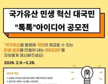 대경타임즈 김영호 기자 | 국가유산청은 2월 9일부터 2월 28일까지 국가유산을 활용해 국민 삶의 질을 높이는 민생형 정책을 발굴하기 위한 '국가유산 민생 혁신 대국민 “톡톡” 아이디어 공모전'을 개최한다. 올해 처음으로 실시되는 이번 공모전은 국가유산 정책을 기존의 보존 중심에서 나아가 생활 · 복지 · 경제 · 교육 · 인공지능(AI) · 지역 활성화 등 국민 삶 전반으로 확장하는 것을 목표로 하며, 공모 분야는 총 세 가지이다. 먼저, ‘국민과 함께 하는 소통·협력’ 분야에서는 국민·지자체·민간·정부 부처가 함께 협력해 K-헤리티지를 지역과 일상 속에서 즐기고 활용할 수 있는 아이디어 또는 K-헤리티지를 통해 국민이 체감할 수 있는 민생 효과를 만들어낼 수 있는 제안을 기다린다. ‘대국민 서비스’ 분야에서는 국가유산의 보존·관리, 활용 과정에서 국민이 느끼는 불편을 줄이고, K-컬처 콘텐츠와 연계해 국가유산을 더 쉽고 친근하게 누릴 수 있는 서비스 개선 아이디어를 모집한다. ‘일하는 방식 혁신’ 분야에서는 국가유산 관련 업무의 불필요한 절차를 줄이고, 인공지능(AI)과 디지털 기술 등을 활용해