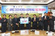 대경타임즈 최신형 기자 | 경주시는 9일 시청 대외협력실에서 NH농협은행 경북본부와 ‘APEC 성공개최 예금 지정기탁 협약식’을 갖고 총 1억 원의 기부금을 전달받았다. 이날 협약식에는 주낙영 경주시장과 김진욱 NH농협은행 경북본부장, 황대화 NH농협은행 경주시지부장 등 관계자 7명이 참석했다. 이번 기금은 NH농협은행이 지난해 8월 APEC 정상회의의 성공적인 개최를 응원하기 위해 특별 출시한 ‘APEC 2025 KOREA 성공개최 예금’ 상품을 통해 조성됐다. 해당 상품은 1호 가입자인 이철우 경상북도지사를 시작으로 시·도민들의 높은 관심을 모으며 출시 10일 만에 500억 원을 돌파했고, 48일 만에 판매 한도인 3,000억 원을 조기 달성했다. NH농협은행은 예금 판매액의 연평균 잔액 0.001%를 적립해 3,000만 원을 조성했으며, 여기에 자체 기부금 7,000만 원을 더해 총 1억 원의 기금을 마련했다. 경주시는 예금 가입자들의 참여와 농협은행의 지역 상생 의지가 함께 담긴 이번 기금을 향후 포스트 APEC 로드맵 추진 등 경주시의 미래 발전을 위한 다양한 사업에 활용할 계