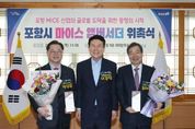 대경타임즈 이강옥 기자 | 포항시는 15일 시청 대외협력실에서 ‘포항 마이스(MICE) 앰버서더 위촉식’을 처음으로 개최해 글로벌 네트워크와 전문성을 갖춘 민간 전문가를 공식 홍보대사로 임명했다. 이번 위촉식은 포항시가 국제회의 유치 경쟁력을 강화하고 글로벌 마이스도시로의 도약을 본격화하기 위해 마련됐으며, 최재철 (재)기후변화센터 이사장과 박일준 대한상공회의소 상근부회장을 포항 마이스 앰버서더로 위촉했다. 위촉 기간은 올해 1월부터 2028년 1월까지 2년 간이다. 위촉식에서는 홍보대사 위촉패 전달과 함께 기념촬영 및 오찬이 진행됐다. 특히 위촉 대상자들은 포항시의 국제회의 유치 전략과 주요 활동 계획에 대한 의견을 나누며 향후 ‘마이스 앰버서더’로서의 역할에 대한 기대감을 나타냈다. 최재철 이사장은 외교·기후·국제협력 분야에서 풍부한 경험과 글로벌 네트워크를 보유한 인사로, 국제회의 및 포럼 연계에 강점을 지니고 있다. 박일준 상근부회장은 산업·경제·기후 정책 전반을 아우르는 전문성을 바탕으로 산업 연계형 마이스 콘텐츠 확산에 기여할 것으로 기대된다. 앞으로 이들은 앞으로 세계녹색성장포럼(WGG