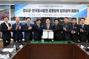 대경타임즈 김대경 기자 | 장수군은 12일 군청 회의실에서 장수군의회, 한국동서발전(주)과 장수군 양수 발전 사업 성공적 유치를 위한 공동협력 업무협약을 체결했다. 이날 협약식에는 최훈식 장수군수, 최한주 군의회 의장을 비롯해 권명호 한국동서발전 사장 등 기관 관계자 20여 명이 참석했다. 협약식에서는 장수양수발전소 유치를 위한 공동 협력관계를 구축하고 에너지파크 조성 및 관광자원화 등 6가지 사항에 대해 협력할 것을 약속했다. 장수양수발전소는 기존 저수지를 활용하는 덕산 용림제부터 번암 동화저수지 일원을 사업예상지로 검토중이며, 500㎿급의 발전 용량으로 총 사업비 약 1조 5,000억 원이 투자되어 2027년 12월 최종 선정되면 2038년까지 12년 간 공사가 이뤄질 예정이다. 양수발전은 남는 전력으로 하부저수지의 물을 상부저수지로 끌어올린 뒤 물을 떨어뜨려 전기를 얻는 방식으로 발전 시 탄소가 발생하지 않아 기후위기 시대에 적합한 전원이다. 장수군은 양수발전소 건설이 지역과 함께 상생하는 100년 향토기업의 유치로 이어져 약 1,100억 원의 지방세수 및 약 500억 원 규모의
