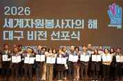대경타임즈 최영 기자 | 대구광역시는 3월 23일 오후 2시, iM뱅크 제2본점에서 대구광역시자원봉사센터와 함께 ‘2026년 세계자원봉사자의 해 대구비전 선포식’을 성황리에 개최했다. 이번 선포식은 유엔(UN)이 2001년 이후 25년 만에 다시 지정한 ‘2026 세계자원봉사자의 해’를 맞아 대구만의 차별화된 자원봉사 모델을 구축하고 새로운 도약을 선언하기 위해 마련됐다. 대구시는 전국 최초로 6년 연속 자원봉사 우수도시로 선정되는 등 자원봉사 선도도시로서의 위상을 이어가고 있다. 특히 올해는 전국 최초로 설립된 대구시자원봉사센터가 개소 30주년을 맞는 뜻깊은 해로, 지난 성과를 돌아보고 미래 30년의 청사진을 제시하는 데 중점을 뒀다. 이날 행사에는 안중곤 대구시 행정국장, 윤영애 대구시의회 기획행정위원회 위원장, 홍정우 행정안전부 민간협력공동체과장을 비롯해 한국중앙자원봉사센터 등 100여 개 유관기관 관계자와 자원봉사자 350여 명이 참석했다. 행사는 홍보영상 상영을 시작으로 ▲개회식 ▲비전 선언문 낭독 ▲선포 퍼포먼스 ▲축하공연 순으로 진행됐다. 참석자들은 선언문을 함께 낭독하며 자원봉사의 사