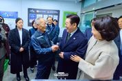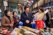 대경타임즈 이강옥 기자 | 이재명 대통령과 김혜경 여사는 오늘 낮, 설 명절을 앞두고 충북 충주시에 위치한 무학시장을 찾아 지역 세밑 물가를 점검하고 상인들을 만나 현장 의견을 청취했다. 무학시장은 지난 1978년 노점상들의 정착을 위해 개설된 전통시장이며, 이번 방문은 설 민심을 청취하기 위한 민생 행보의 일환이다. 이 대통령과 김 여사는 시장 내 여러 상점을 들러 “새해 복 많이 받으세요”라며 인사를 했고, 상인과 시민들은 환호와 박수로 이 대통령 부부를 맞았다. 이 대통령 부부에게 더덕을 판매한 상인은 “덕분에 마수걸이를 한다”며 “오늘 장사가 잘될 것 같다”고 말해 웃음을 자아냈다. 다른 상인들도 “힘나게 해주셔서 감사하다”, “너무 고생 많으시다”며 인사를 전했다. 이 대통령 부부는 황태포, 시금치, 곶감과 깐밤 등 제수용품과 먹거리를 구입했고 백도라지, 마른 멸치, 배추전 등을 즉석에서 맛보기도 했다. 이 대통령 부부는 온누리상품권과 현금으로 결제했다. 김 여사가 물건을 고르는 사이 이 대통령은 상인들에게 “장사는 잘 되느냐”, “곧 설인데 어떠시냐”고 물었다. 정육점 사장은