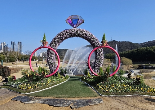 특히 올해는 무지개 분수를 배경으로 지난해보다 더 넓은 면적을 확보해 다양한 봄꽃과 관엽식물을 식재하고 꽃반지 조형물을 설치했다.