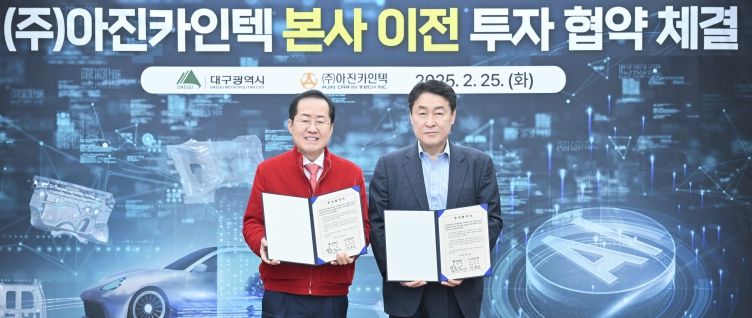 디지타임즈(DGTIMEZ) 김영호 기자 | 대구광역시는 2월 25일 오전 11시 대구광역시 산격청사에서 ㈜아진카인텍(대표 서중호)과 수성알파시티 내 ‘본사 및 ABB*기반 차세대 기술연구소 이전’을 위한 투자협약을 체결했다.