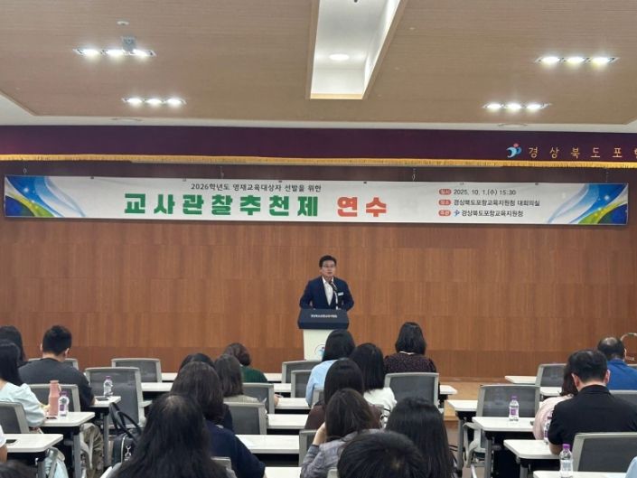 이재헌 포항교육지원청부설영재교육원장은 “교사관찰추천제에 대한 올바른 이해로 잠재력 있는 영재를 발굴할 수 있도록 영재교육에 지속적인 관심을 가져줄 것”을 당부했다.