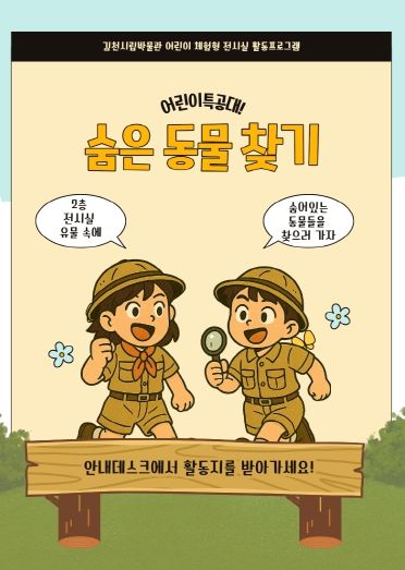 디지타임즈(DGTIMEZ) 김대경 기자 | 김천시시설관리공단(이사장 김재광)이 운영하는 김천시립박물관은 휴관이 종료되는 오는 12월 25일부터 상설전시실에서 어린이 관람객을 위한 체험형 전시 활동프로그램 '어린이특공대! 숨은 동물 찾기'를 운영한다.