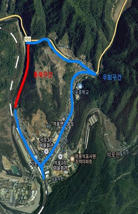 대경타임즈 김대경 기자 | 봉화군은 석포면 석포리 일원 불미고개 입구부터 하수처리장구간 (군도20호)을 오는 4월 8일부터 8월 15일까지(약 130일간) 낙석방지망 설치 등 정비사업을 위해 전면 통제 할예정이다.