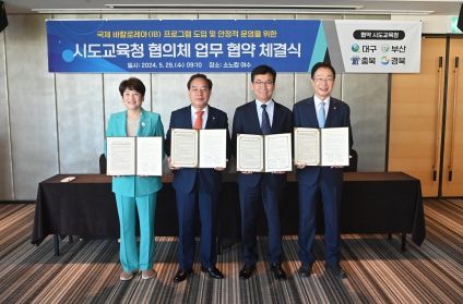 디지타임즈(DGTIMEZ) 남해련 기자 | 경북교육청은 29일 전라남도 여수시에 있는 소노캄 여수에서 대구교육청과 충북교육청, 부산교육청 등 3개 교육청과 함께 ‘2024년 IB 프로그램 도입․운영을 위한 업무협약(MOU)’을 체결했다.