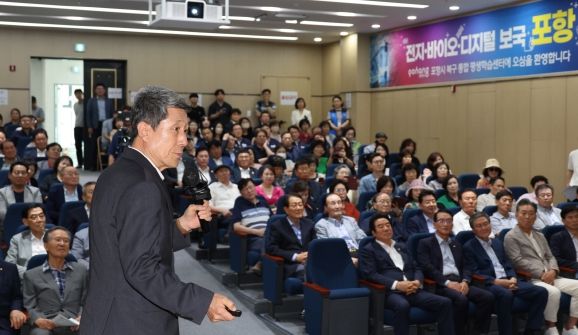 포항지역발전협의회 및 포항시의정회의 초청으로 이뤄진 이번 강연에는 150여 명의 회원들이 자리했으며, 이 시장은 포항의 역사와 정체성에 대해 설명하며 강의의 첫 문을 열었다.