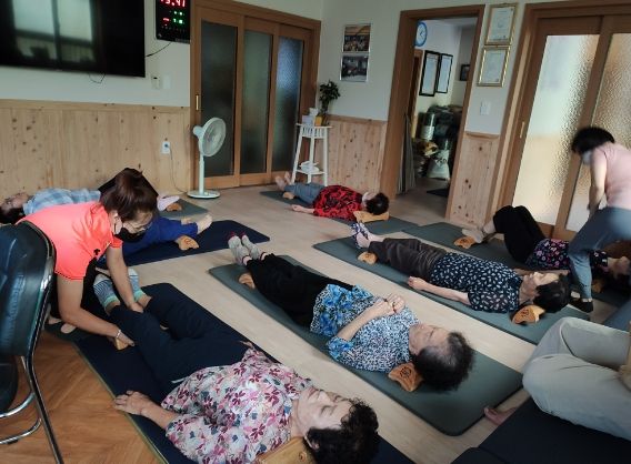 이번 프롭테라피 교육은 척추 주변 뭉친 근육을 이완하고 560가지 혈점을 자극하여 신체기능의 원활한 순환을 도와 주민들의 건강 유지 욕구를 충족하는 프로그램으로, 마을주민들의 수요가 높은 교육이다.