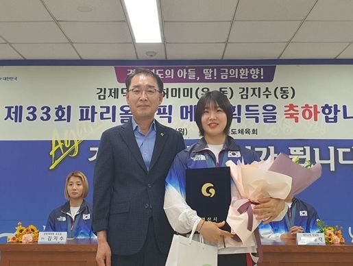디지타임즈(DGTIMEZ) 이강옥 기자 | 조현일 경산시장은 이번 2024 파리올림픽 유도 여자 57kg 이하급 은메달 및 혼성단체전 동메달을 획득한 허미미(경북체육회) 선수에게 축전을 보냈다.