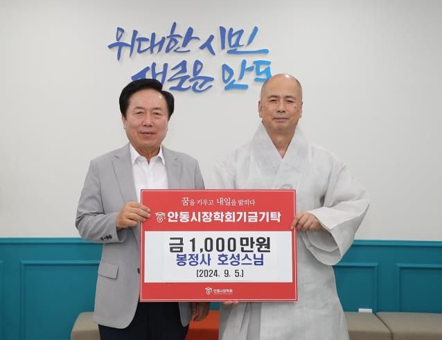 디지타임즈(DGTIMEZ) 김완태 기자 | (재)안동시장학회는 9월 5일, 봉정사 호성스님이 시청을 방문해 장학기금 1천만 원을 개인자격으로 기탁했다고 밝혔다.