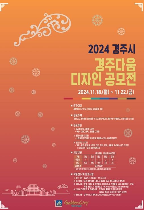 경주시는 ‘역사를 품은 도시 경주를 디자인하다’를 주제로 ‘2024 경주시 경주다움 디자인 공모전’을 개최한다고 11일 밝혔다.