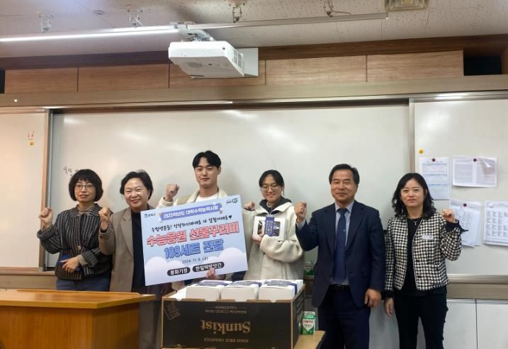 이재진 대표는 “힘겨운 수험생활을 견뎌내고 있는 지역 후배들에게 도움이 되기를 바라는 마음으로 작은 선물을 준비했다.”며 “어려움이 많았겠지만 마지막까지 최선을 다해 원하는 꿈을 이루길 바란다.”라고 말했다.