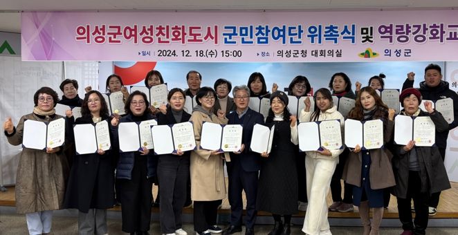 디지타임즈(DGTIMEZ) 김대경 기자 | 의성군은 지난 18일 군청 대회의실에서 여성친화도시 군민참여단 23명이 참석한 가운데 위촉식 및 역량강화교육을 추진했다.