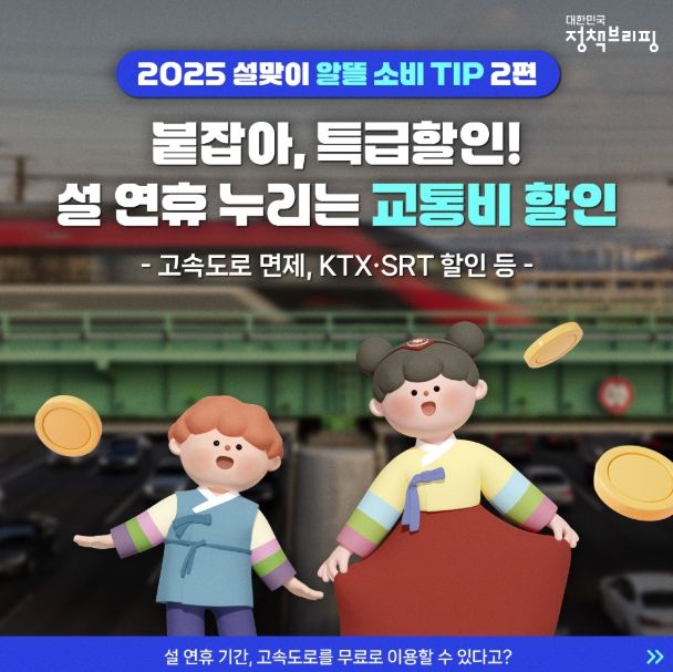 설 연휴 나흘간 고속도로 통행료를 무료로 이용할 수 있으니 고향 방문 후 주변의 명소에 부담 없이 방문해 보세요. 이외 날짜에는 정상 요금이 부과됩니다.
