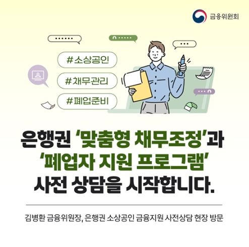 디지타임즈(DGTIMEZ) 최신형 기자 | 은행권 '맞춤형 채무조정'과 '폐업자 지원 프로그램' 사전상담을 시작합니다.