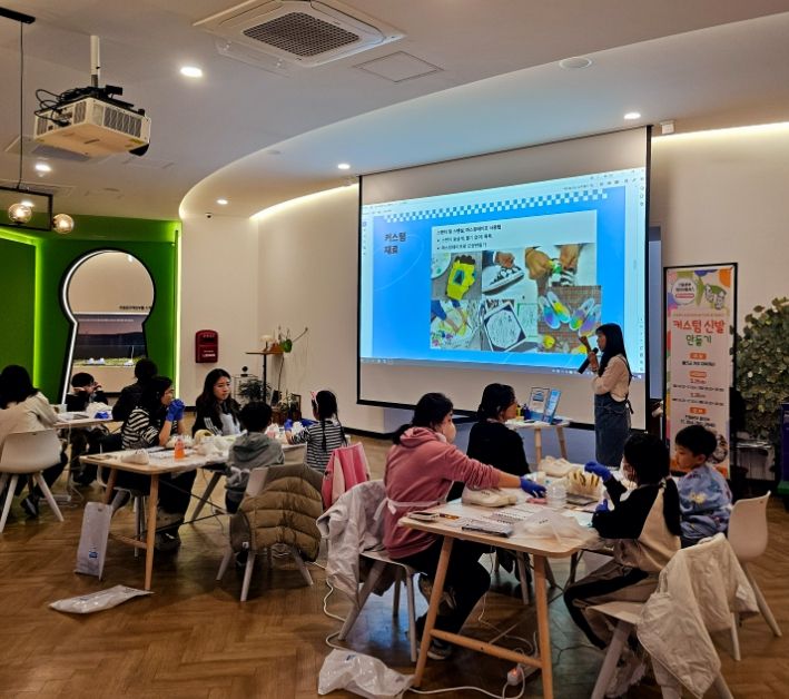 이번 에너지아뜰리에는 원하는 디자인으로 세상에 단 하나밖에 없는 커스텀 신발을 만드는 프로그램으로 총 56명의 부모와 초등학생 자녀가 함께 참여했다.