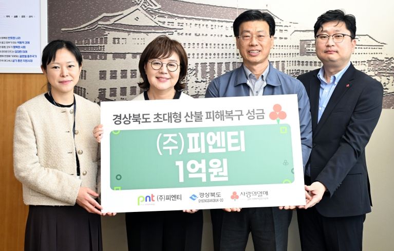 ㈜피엔티는 17일 경북도청에서 이번 산불로 하루아침에 소중한 가족과 삶의 터전을 잃은 이재민들을 위해 써달라며 사회복지공동모금회에 성금 1억원을 전달했다.