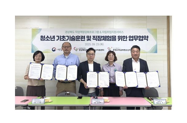 디지타임즈(DGTIMEZ) 이강옥 기자 | 포항시청소년재단 포항시학교밖청소년지원센터는 최근 학교 밖 청소년의 기초기술훈련과 직장체험 기회 확대를 위해 지역 사업장 2곳과 업무협약을 체결했다고 밝혔다.