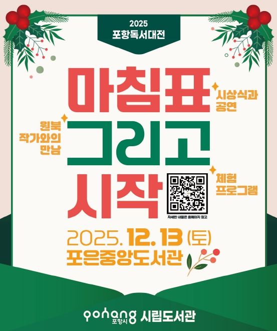 디지타임즈(DGTIMEZ) 이강옥 기자 | 포항시립도서관은 오는 12월 13일 포은중앙도서관에서 연말맞이 문화행사인 ‘2025 마침표 그리고 시작’을 개최한다.