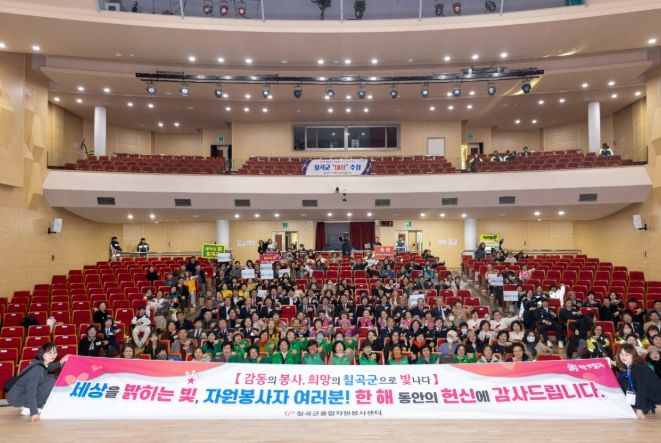 디지타임즈(DGTIMEZ) 김영호 기자 | 칠곡군은 지난 3일 칠곡군 왜관읍에 위치한 칠곡군 교육문화회관에서 ‘감동의 봉사, 희망의 칠곡군으로 빛나다’라는 주제로 김재욱 칠곡군수, 이상승 칠곡군의회 의장을 비롯한 주요 기관단체장과 자원봉사자 700여명이 참석한 가운데‘2025년 칠곡군 자원봉사자 대회’를 개최했다.