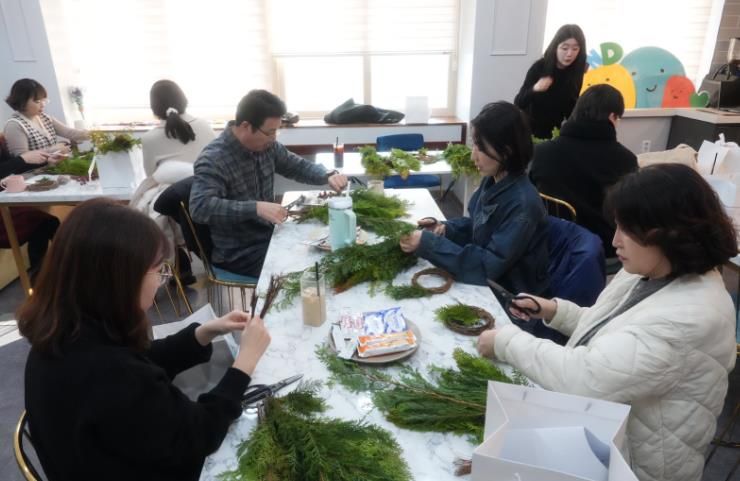 1차 프로그램은 생화를 활용한 크리스마스 리스 만들기, 2차 프로그램은 도자기 만들기 프로그램으로 구성되어 있으며, 각각 플로리스트 및 공예 전문 강사, 그리고 도예 전문 강사가 참여해 수준 높은 교육을 제공했다.