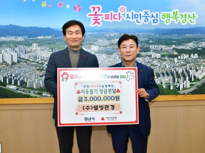조현일 시장은 “어려운 경기임에도 불구하고 지역사회를 위해 꾸준한 나눔을 실천해 주신 ㈜웰빙환경에 깊이 감사드린다”며, “기탁해 주신 성금과 장학금은 도움이 필요한 이웃과 지역 인재 육성을 위해 투명하고 뜻깊게 사용될 수 있도록 최선을 다하겠다”고 말했다.
