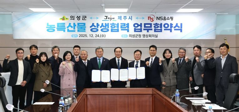 대경타임즈 김대경 기자 | 의성군은 지난 24일 제주시 및 ㈜NS쇼핑(대표이사 조항목)과 우수 농특산물 유통 확대와 판로 다각화를 위한 상생협력 업무협약을 체결했다고 밝혔다.