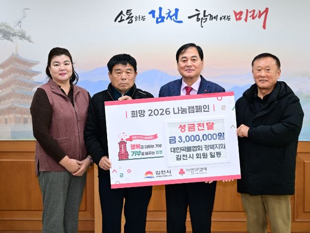 대경타임즈 김대경 기자 | 대한곡물협회 김천시지부(지부장 윤진채)에서는 26일 김천시청을 방문해 ‘희망2026 나눔캠페인’ 성금 300만 원을 기부했다.