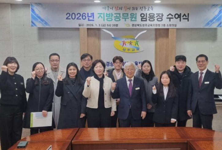 대경타임즈 남해련 기자 | 성주교육지원청은 2026년 1월 2일 청사 내 소회의실에서 지방공무원 전입자 및 신규 임용자를 대상으로 임용장 수여식을 개최했다.