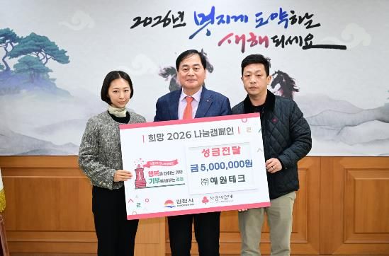 대경타임즈 김대경 기자 | 김천시는 지난 15일, ㈜예원테크(대표 정재욱)로부터 희망2026나눔캠페인 성금 500만 원을 전달받았다고 밝혔다.