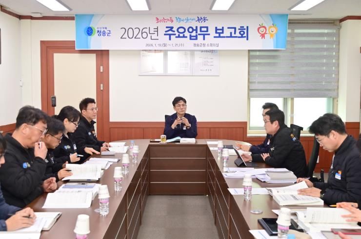 윤경희 청송군수 주재로 개최되는 이번 보고회는 2026년도 군정 주요업무 추진계획과 민선8기 공약 이행상황을 종합적으로 점검하여 군민이 체감하는 살기 좋은 청송군을 조성하기 위해 마련됐다.