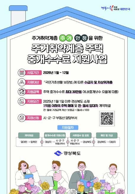 대경타임즈 최신형 기자 | 상주시는 주거 취약계층의 경제적 부담을 완화하고 안정적인 주거환경 조성을 위하여 2026년 1월부터 “주거 취약계층 주택 중개보수 지원사업”을 시행한다.