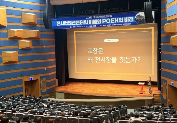 이번 교육은 송남운 (재)포항국제전시컨벤션센터 대표이사를 초청해 공직자의 산업 이해도를 높이고 포항국제전시컨벤션센터(POEX)의 역할과 발전 방향을 공유하는 자리로 마련됐다.