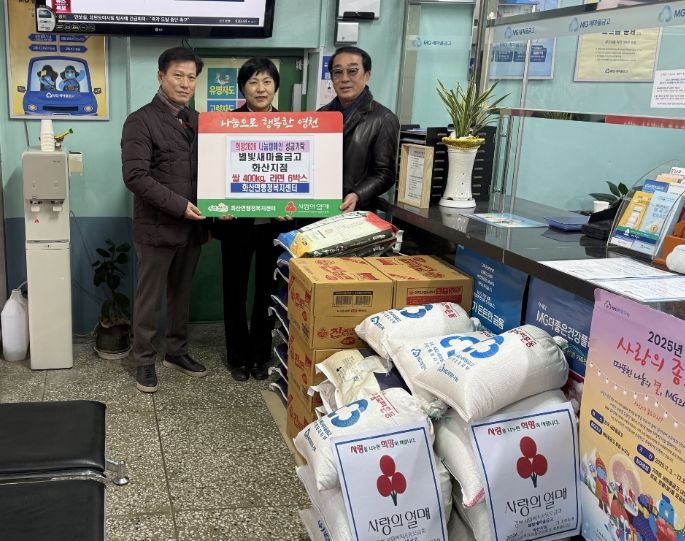 대경타임즈 최신형 기자 | 영천 별빛새마을금고 화산지점은 지난 28일 지역 내 어려운 이웃을 돕기 위해 쌀 400kg과 라면 6박스를 화산면에 기탁했다.