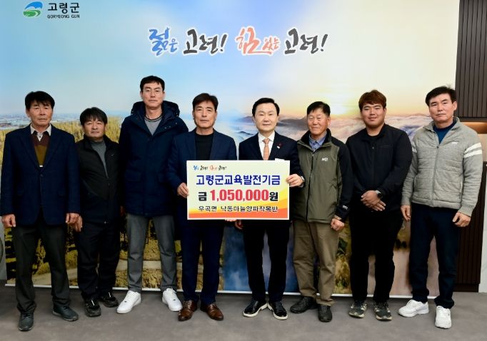 고령군은 지역교육 활성화를 위하여 선뜻 큰 금액을 기탁한 우곡면 낙동마늘양파작목반에 고마움을 표하고 “어느 때보다 어려운 가운데에도 지역 교육 발전을 위한 남다른 관심에 감사하다.”며 “우리 아이들에게 최고의 교육여건을 조성하기 위해 최선을 다하겠다.”고 답했다.